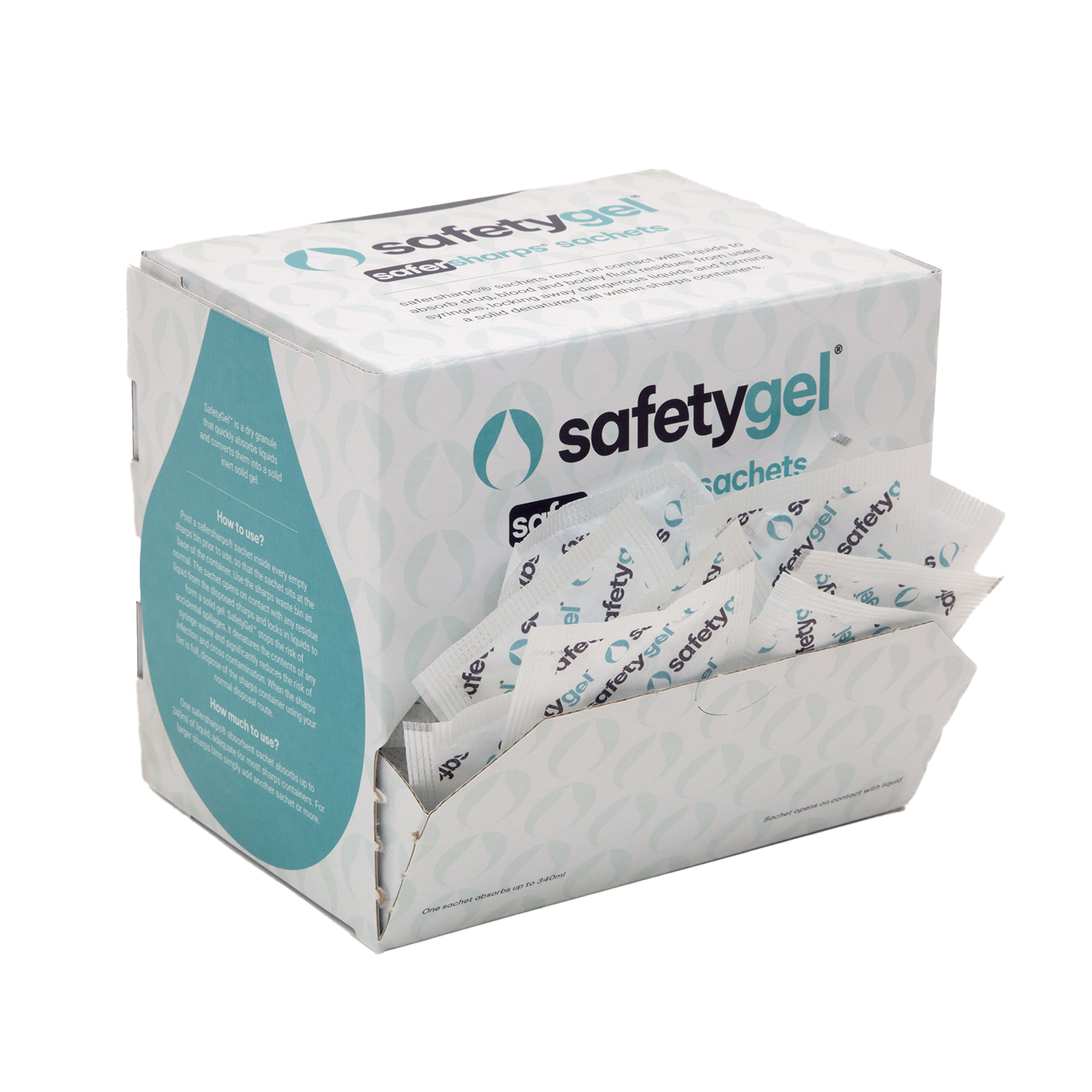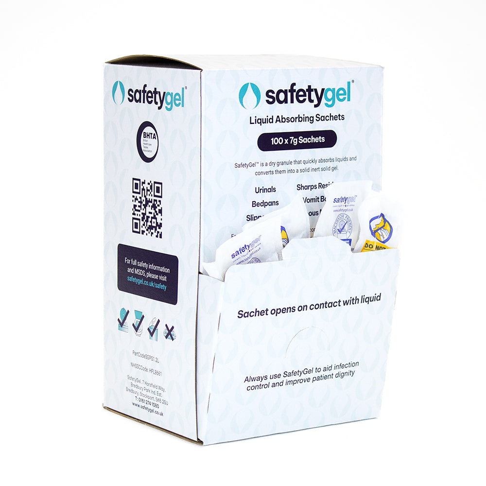 SafetyGel Super Absorbent Fast-Acting Sachets - 340ml Absorption Box of 100
